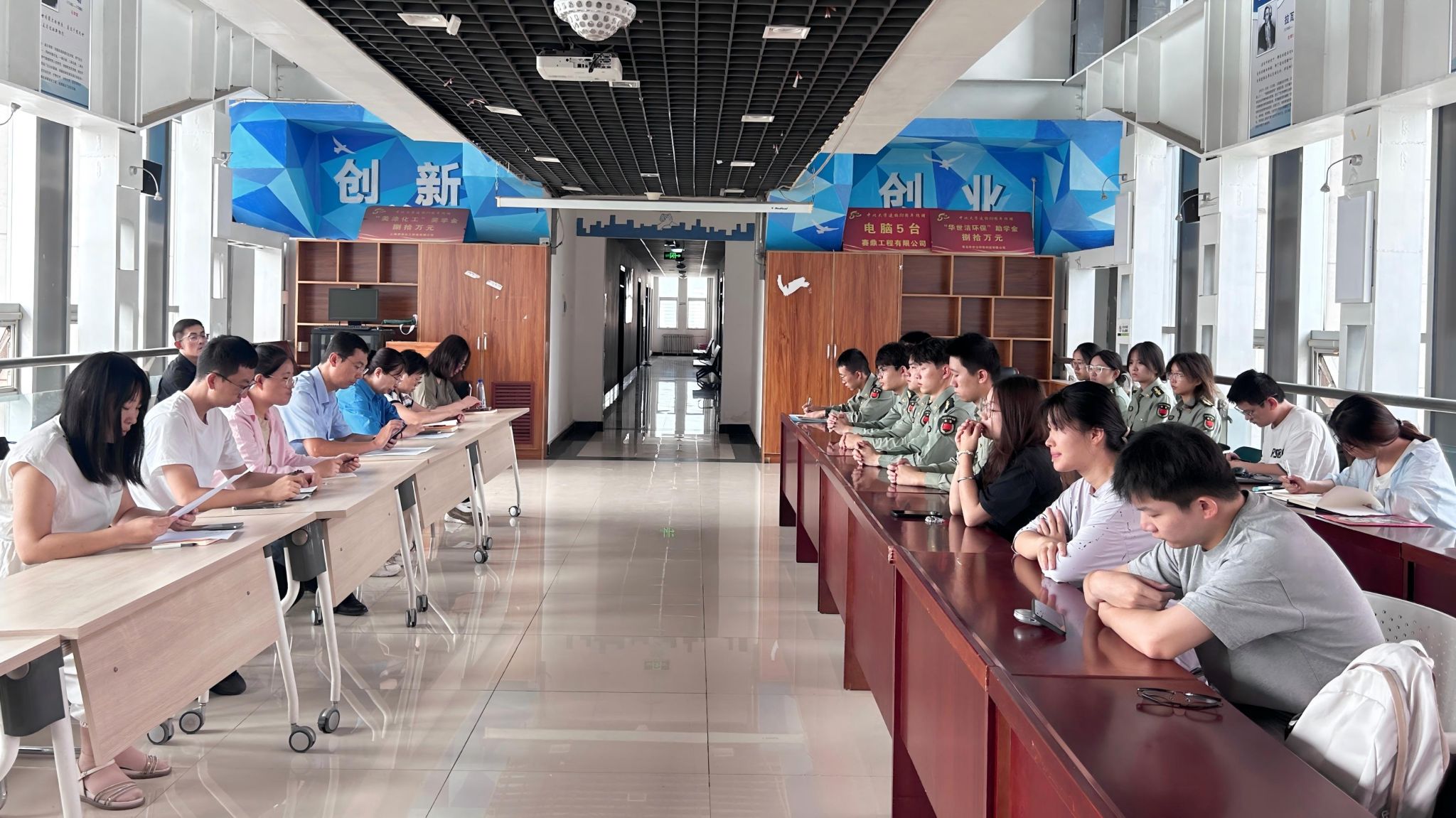 为切实做好2025级新生军事训练工作,加强学院与教官大队之间的沟通协调,明确军训任务与要求,9月11日上午,麻豆影视 在科学楼C座7层连廊举行2025级新生军训教官见面会。学院党委副书记蔡文涛、四营全体教官、2025级新生班主任及朋辈辅导员共同参会,会议由学生科科长赵芸芳主持。