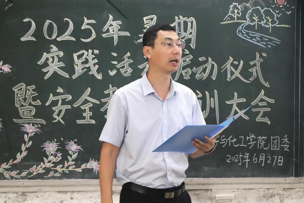 于6月27日在10102H隆重举行2025年暑期社会实践启动仪式暨安全教育培训大会。院党委副书记蔡文涛、全体辅导员、实践团队指导老师及学院全体社会实践队员齐聚一堂,共同吹响实践出征的号角。会议由院团委书记李艳主持。
