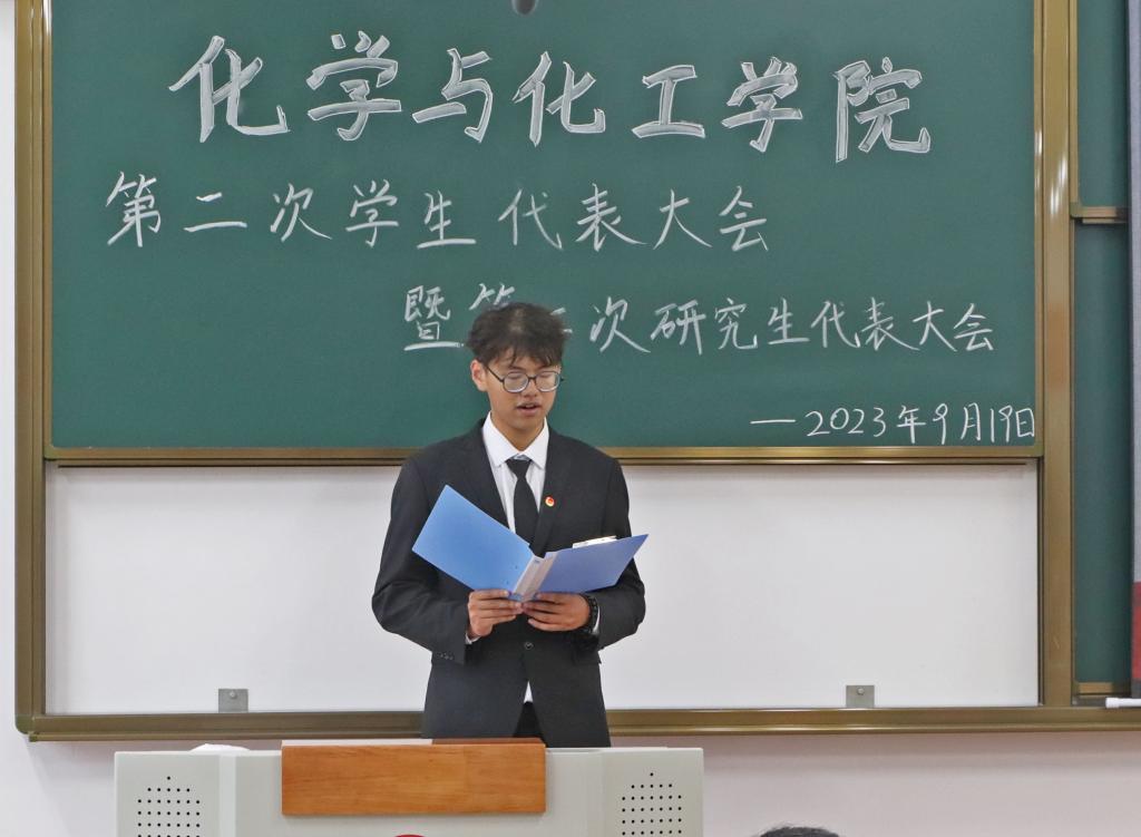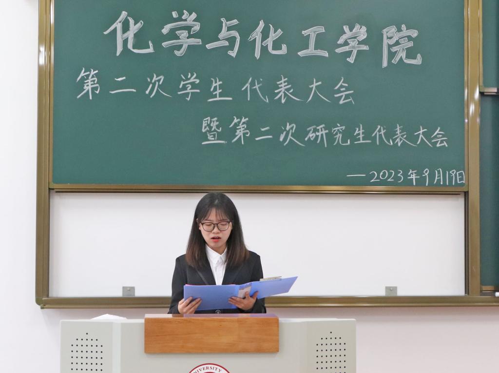 团委书记李艳宣读了《关于化学化工学院召开第三十次团代会暨学代会请示的批复》,对学院团学工作和过去一年来取得的成绩表示高度的肯定,希望新一届团学干部能够继续坚定理想信念,加强自身锤炼,继续开创化学化工学院团学工作新局面。