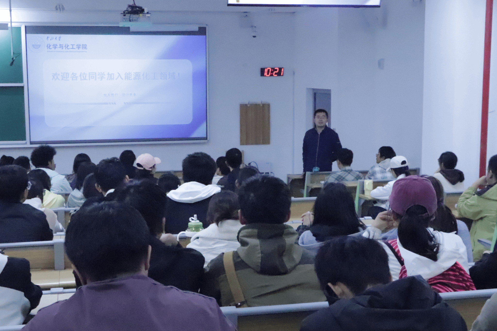 10月17日,能源化学工程专业新生专业教育在18101H教室举行。宋玮老师围绕专业定位、培养方案、学分构成、课程体系四大核心,鼓励新生转变学习心态,主动参与体育锻炼、社团活动与社会实践,全面提升综合素质。随后,杜晓强、张栋铭等11名专业教师逐一自我介绍,结合各自科研方向为新生送上成长建议与美好期许。