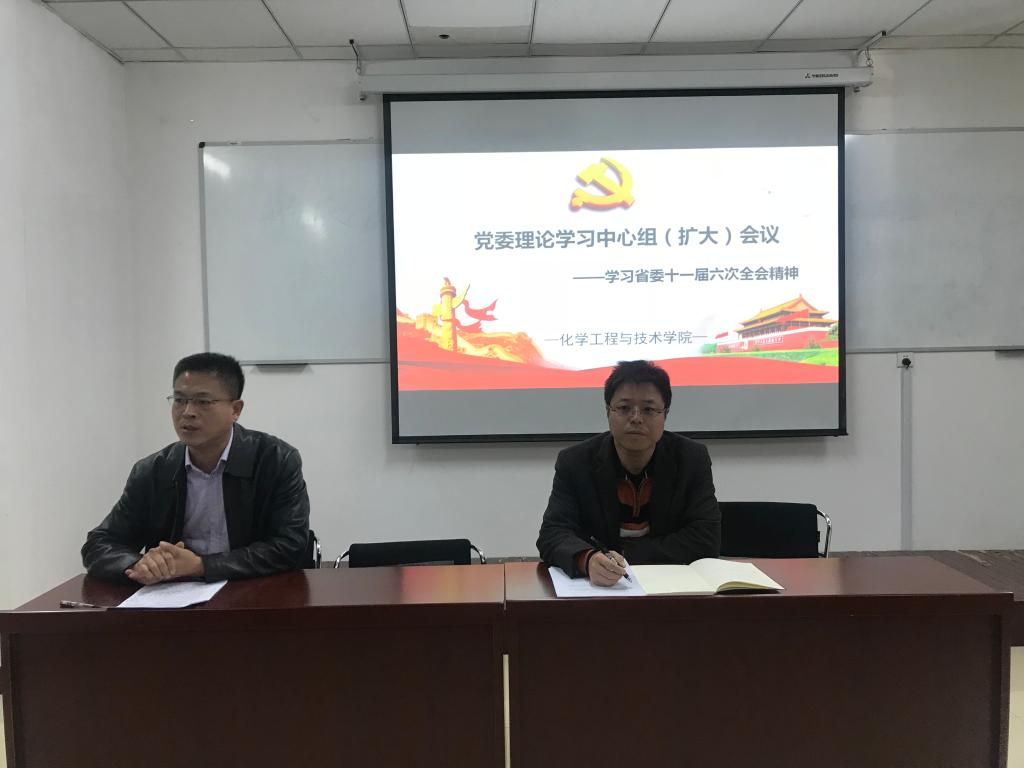 为深入学习领会贯彻省委第十一届六次会议精神,推动习近平总书记视察山西重要讲话精神的学习。11月13日下午,我院在科学楼206召开化学工程与技术学院党委理论学习中心组(扩大)会议,学省委第十一届六次会议精神。大会由院党委书记廖海洪主持,参会人员有:院党委委员、学院领导干部、学科部主任、副主任、科长、各党支部书记。
