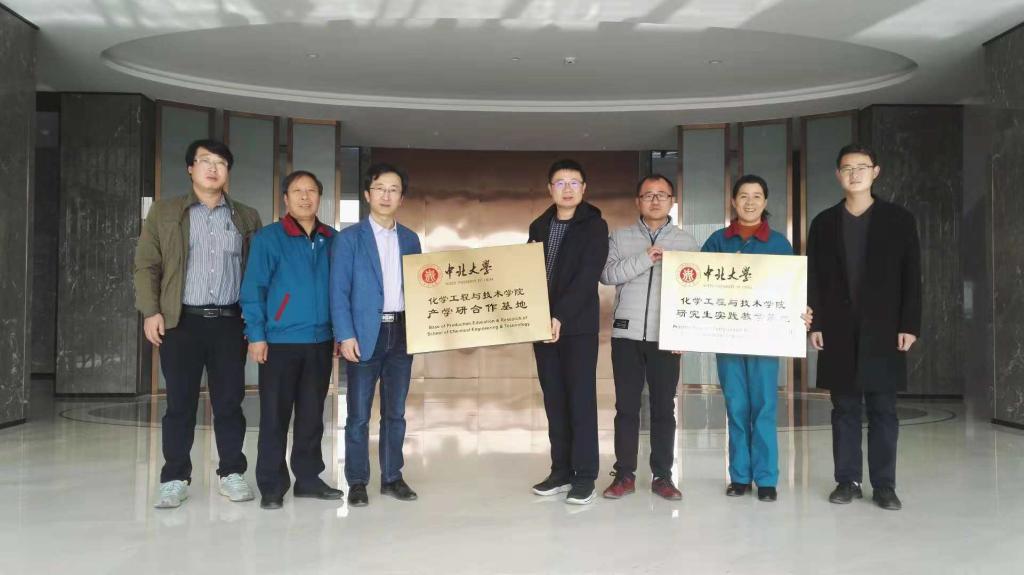 化学工程与技术学院研究生实习教育基地”在山西新天源医药化工有限公司正式挂牌成立。公司总经理苏蔚带领企业相关负责人与我院副院长胡志勇带领的药物绿色合成创新团队一起参加了挂牌仪式。山西新天源医药化工有限公司是专业生产医药中间体的高科技民营企业,公司从事医药中间体的研制、开发、生产已有20余年的历史。公司集研究、开发、生产、进出口贸易为一体,技术力量雄厚,检测手段先进,拥有强大的研发能力和精湛的合成技术,是山西省高新技术企业、山西省首批创新型试点企业。