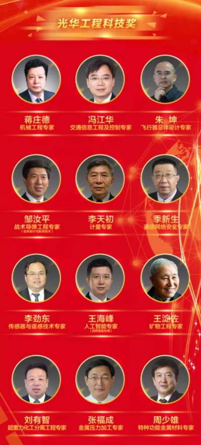 光华工程科技奖被誉为“中国工程界最高奖项”,由第九届全国政协副主席、中国工程院首任院长朱光亚和台湾实业家尹衍樑、杜俊元、陈由豪4位捐赠人捐资设立。1996年,该奖项首届颁发,迄今已有机械、运载、信息、电子、化工、医药、卫生、工程管理等不同工程学科的304位科学家及1个团体获奖。