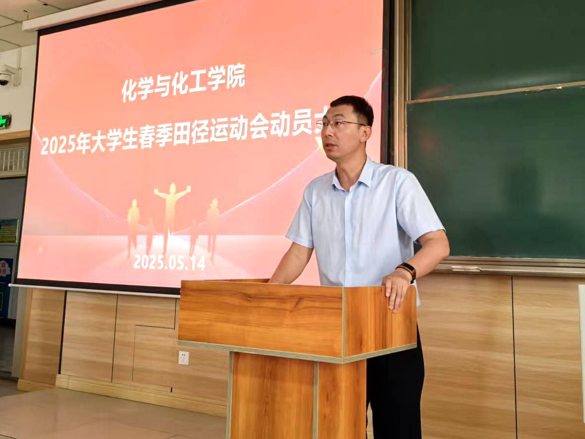 最后,蔡文涛做运动会动员讲话。他对参加本届运动会的同志们提出了几点要求:一是要提高站位,凝聚共识,深刻领会运动会的意义;二是精心组织,周密部署,确保竞赛安全、高效。工作组之间要牢固树立“一盘棋”思想,做到责任落实到位、协同配合到位、风险防范到位这“三个到位”;三是奋勇争先,展现风采,向更高目标发起冲击。同时向全体参赛同学提出了殷切希望:希望大家以拼搏精神挑战自我;以文明素养彰显格局;以团队力量共创辉煌。他号召全体参赛学生:持饱满的热情、昂扬的斗志、严谨的作风,用青春的脚步丈量赛场,用奋斗的汗水书写华章!在本届运动会留下我们化工学子的辉煌印记。